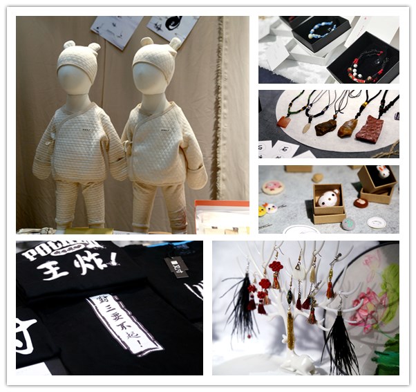 南面车库的展区的成果主要是服装和饰品。旧衣改造的项目让原本被抛弃的衣服又重新焕发了活力,加入现今最时尚的格纹元素和牛仔进行搭配,时尚度直线上升;而饰品设计的组别中,珠宝类首饰华贵典雅、原石类首饰则淳朴大气,各有千秋,令人目不暇接。