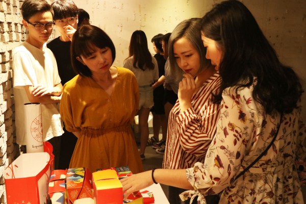 课程后期,基金会的许天岚和宋润博老师也来到展厅,观看欣赏同学们的包装设计作品,并选出了一些优秀作品,参加九月份与中央美院、理工大学关于藏香包装的联合展览。