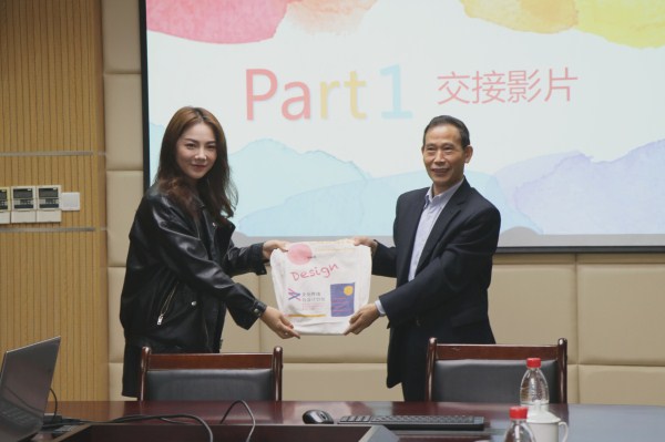 许村镇家纺人才协会秘书长朱小平和我分院教师费宇拓对本次海宁许村人才引进推广视频进行了影片交接。