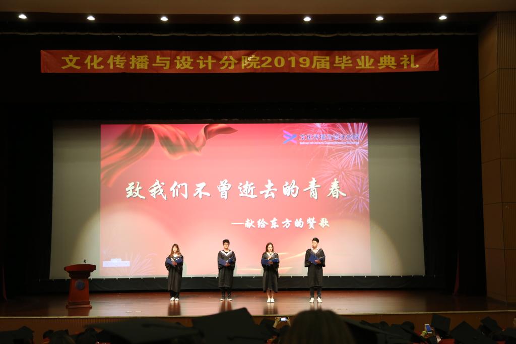 员工党支部毕业生代表们为大家带来了原创诗歌朗诵表演《致我们不曾逝去的青春——献给东方的赞歌》,代表全体同学表达了毕业生对学院、对老师们的感激之情和深深不舍。