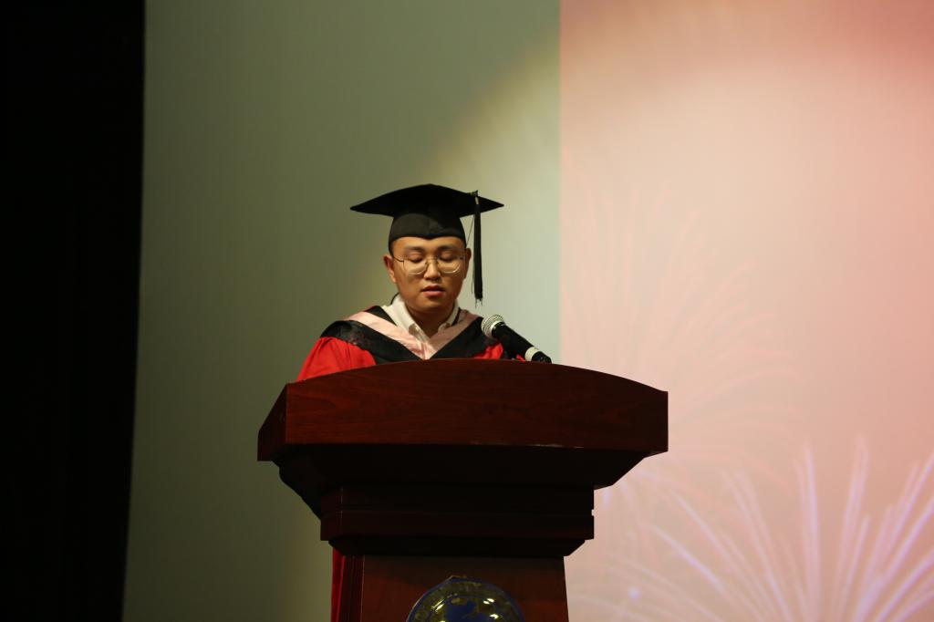 随后,在校生代表16文学D1班石可丽上台表达了对学长学姐的感谢及对他们未来旅程的美好祝愿。