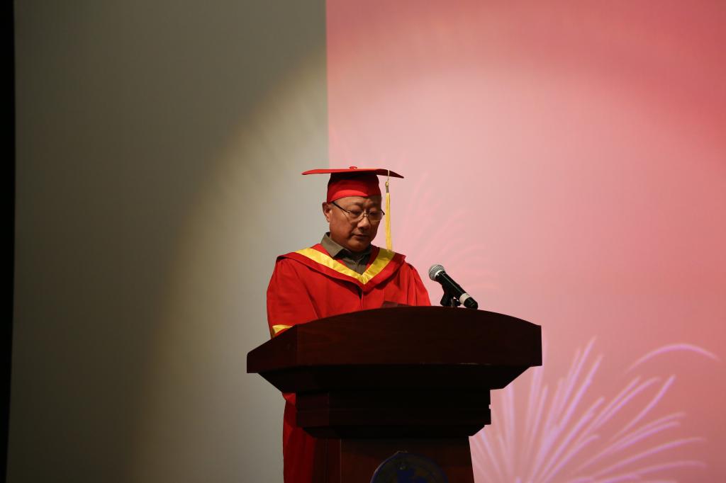 毕业典礼在慷慨激昂的国歌声中拉开帷幕。典礼伊始,沃健经理代表学院致辞。他表达了对毕业生的祝福,希望他们继续虚怀若谷,学习新的知识与技能,学会坦然面对失败、淡然迎接成功、豁然面对误解、毅然接受挑战、悠然享受生活。