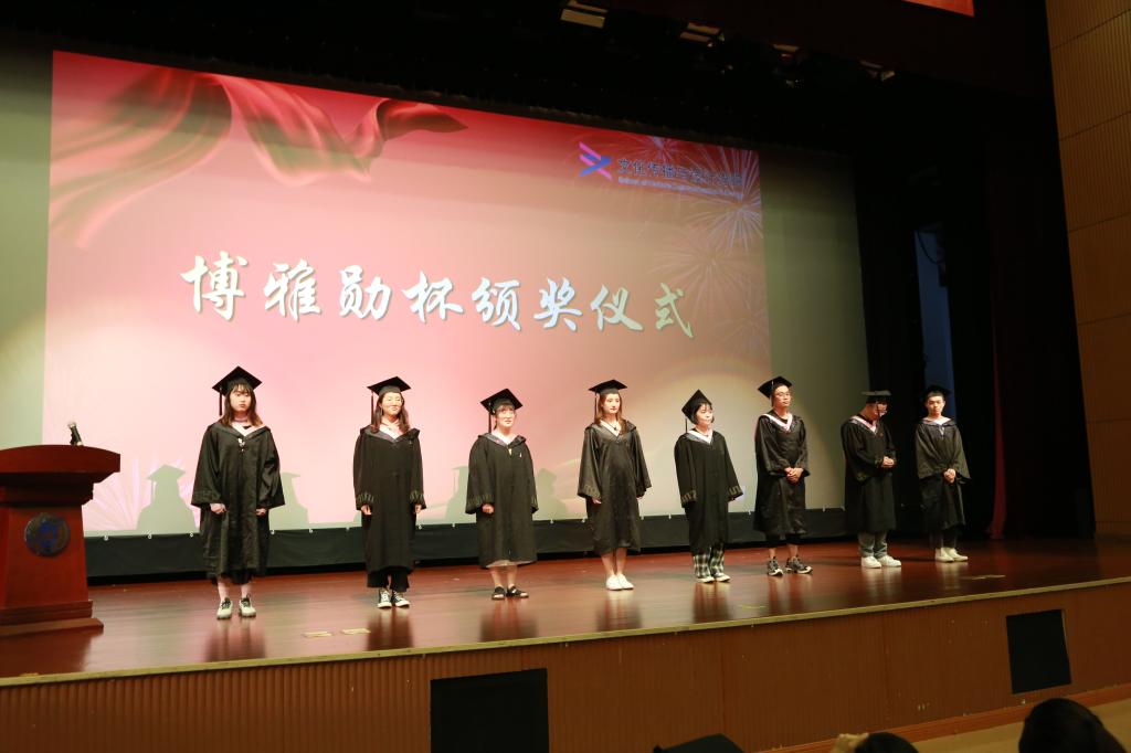 陈明亮老师宣读分院最高荣誉博雅勋杯颁授办法,陆芸老师为曾依婷、毛沪倩、梅宏杰、赵彤彤、黄银霞、金博、傅杰、李达8名2019届博雅勋杯获得者颁发博雅勋杯及获奖证书。