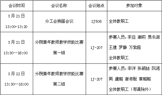 兹定于2017年3月21日(周二)、22日(周三)下午召开如下会议,请相关人员准时出席,望相互转告。