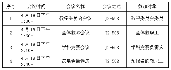 兹定于2016年4月19日(周二)下午召开如下会议,请相关人员准时出席,望相互转告。