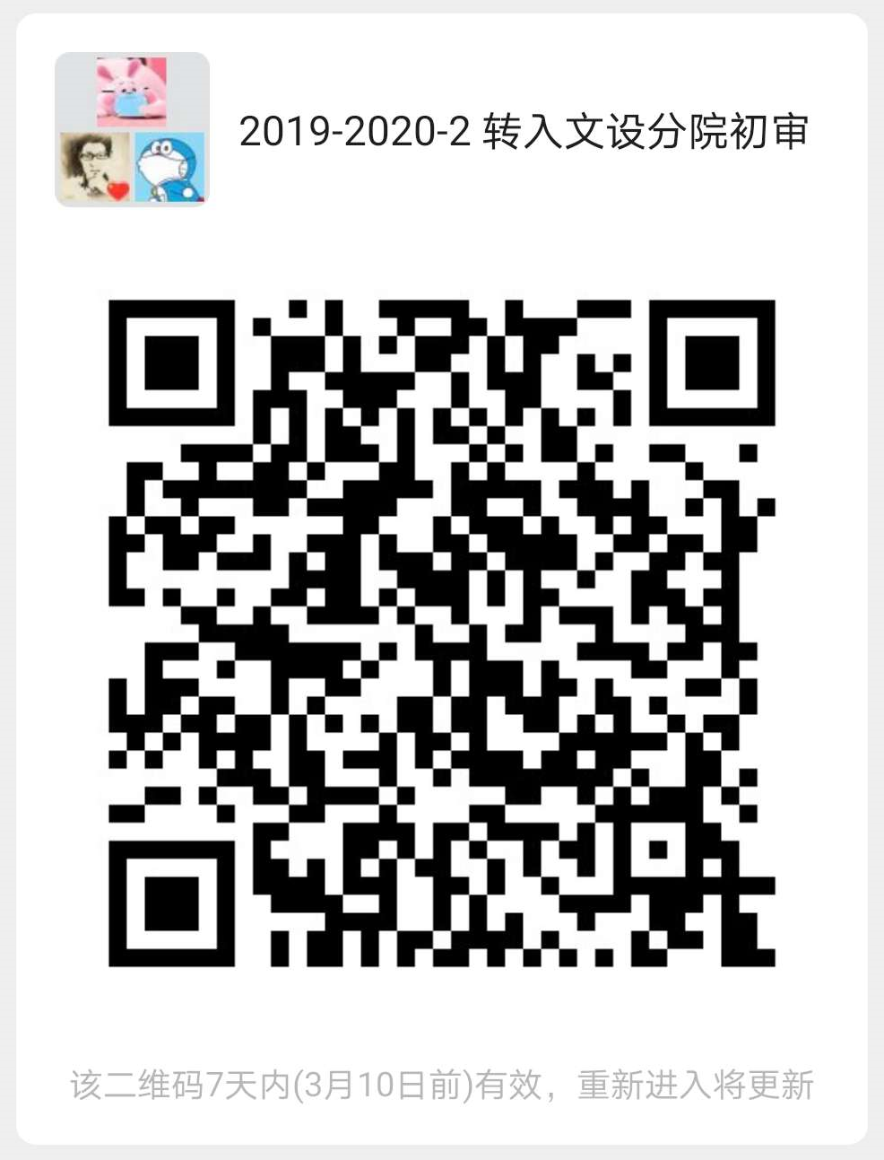 1,外分院转入的同学统一加入微信群(2019-2020-2转入文设分院初审),二维码见通知底部。